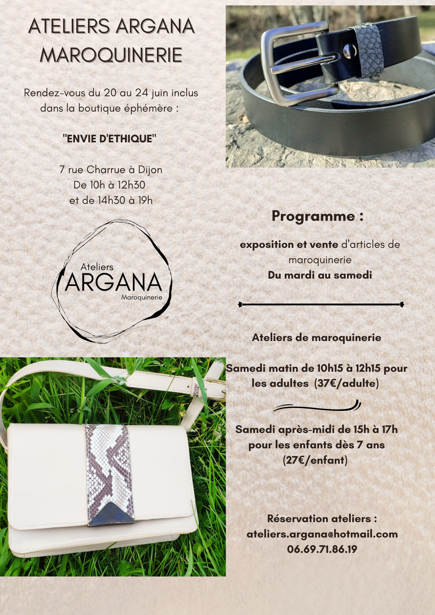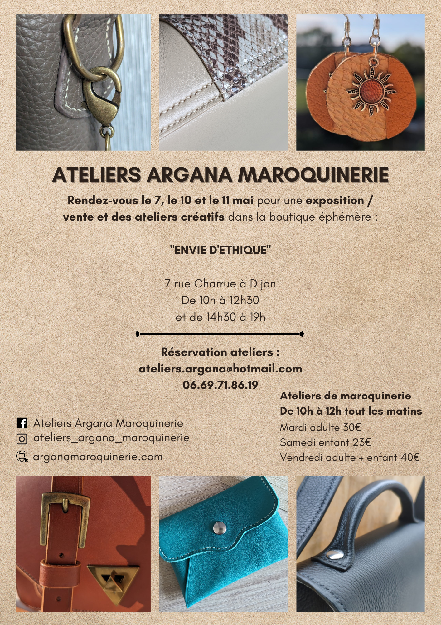 J'ai eu le plaisir de vous inviter à un atelier exclusif de maroquinerie qui c'est tenu le 7 septembre 2024 de 15h à 18h à La Fourmilière, votre boutique artisanale située au 51 Rue General Fauconnet à Dijon.